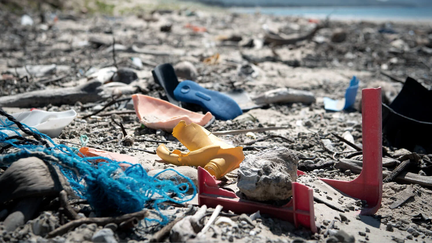 95% of all rubbish in Cape Bedford is plastic, including fishing nets, car tyres or flip flops. Broken fragments are the most common item, with some beaches littered with it like confetti. The next most common items are bottle caps, plastic bottles (drink, chemicals, cleaners, personal care), flip flops, but also anything you can possibly find in a household (toothbrushes, toys, household items, lighters...) as well as recreational and industrial fishing gear. Many items have bite marks from sharks. Another common find in the area are small bleach bottles with puncture marks which stem from an Indonesian fishing technique where the bottles are punctured and the bleach is squirted underwater between corals to stun and catch fish.